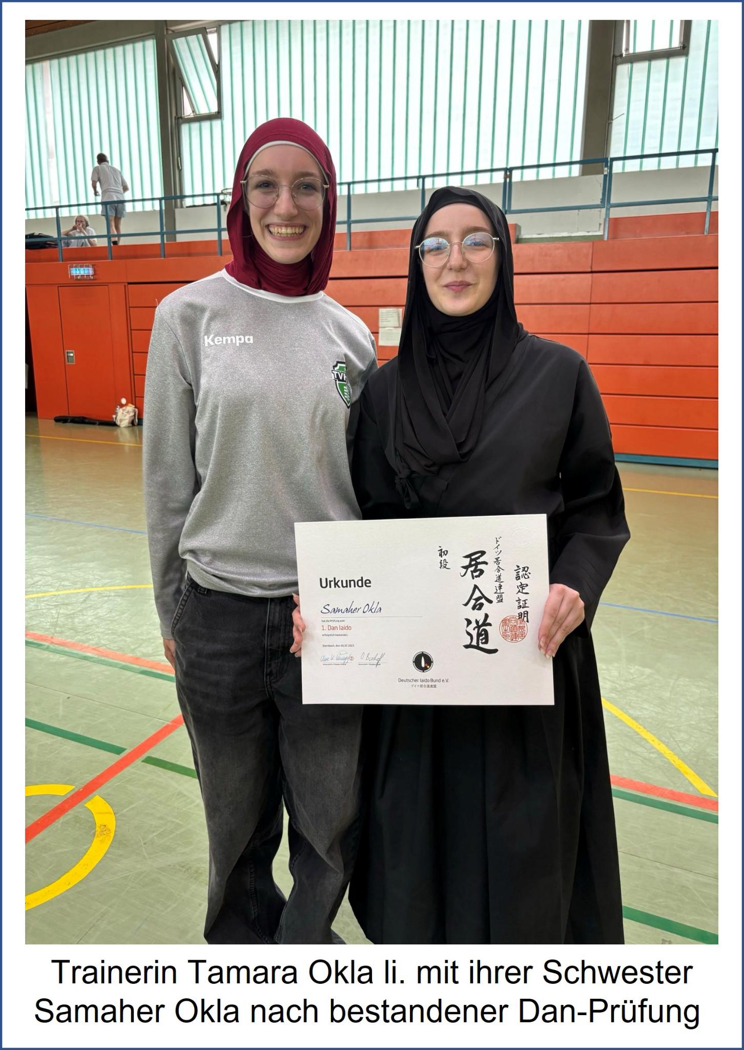 Am Samstag wurden zum Abschluss Prüfungen vom 1.-5. DAN abgehalten. Samaher Okla, unsere jüngste Mitstreiterin, hat hierbei ihren 1. DAN bestanden.